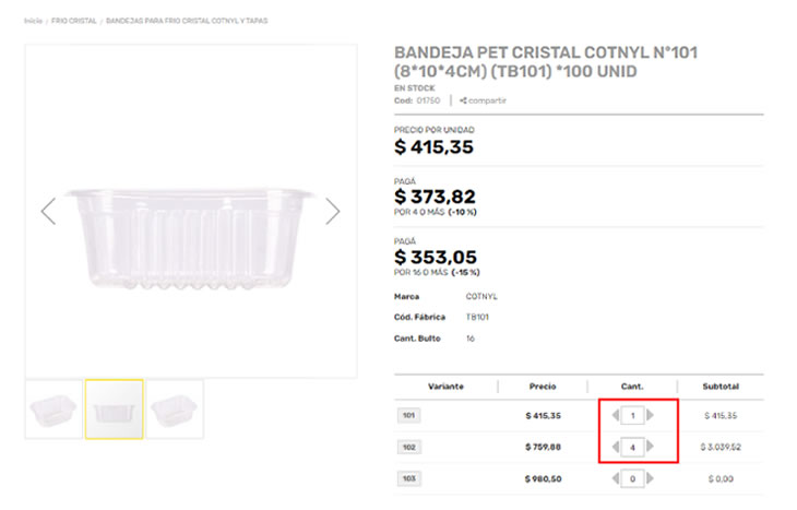 1- Dar un click al artículo se deslplegarán todas las vairantes, de tamaños para cada artículo, alí seleccionarás las cantidades de cada una de ellas.