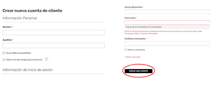 3- Completar todos los campos y realizar un click en CREAR UNA CUENTA.